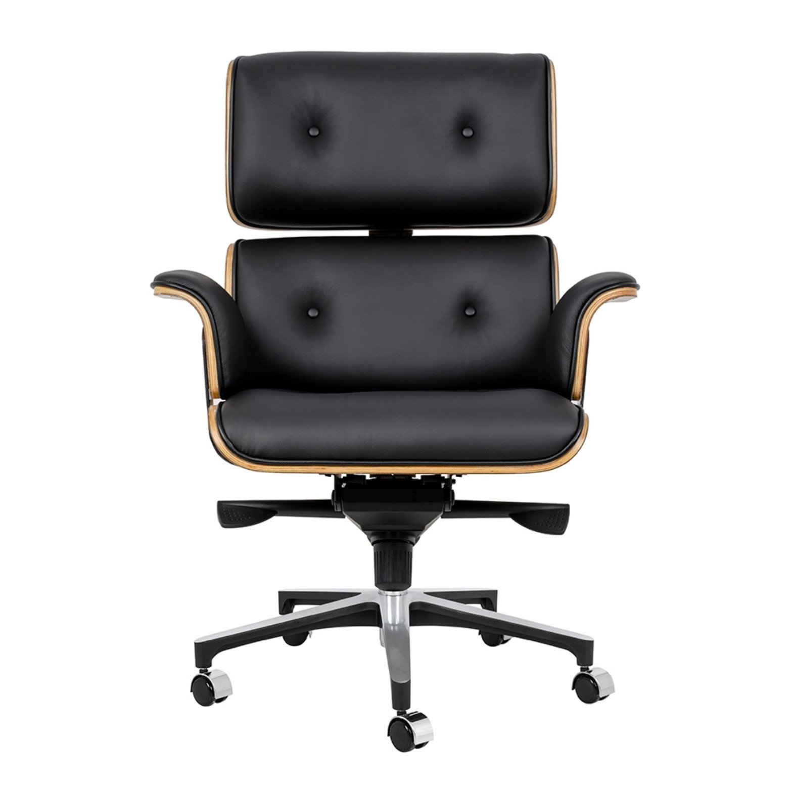 Le fauteuil Riccardo se distingue par son design iconique inspiré des créations italiennes. Sa structure en bois de noyer naturel enveloppe une assise généreusement rembourrée en mousse haute densité, recouverte de cuir véritable noir, offrant un confort durable même lors d’utilisations prolongées. La combinaison de matériaux nobles et de finitions soignées en fait une pièce centrale dans un bureau professionnel, une salle de réunion ou un espace de télétravail raffiné.